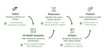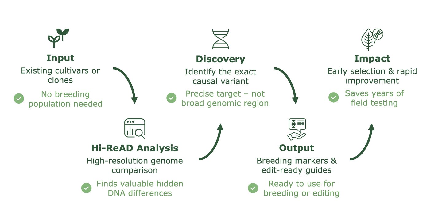 How can our proprietary High-Resolution Allele Discovery (Hi-ReAD) speed up clonal crop breeding and improvement?